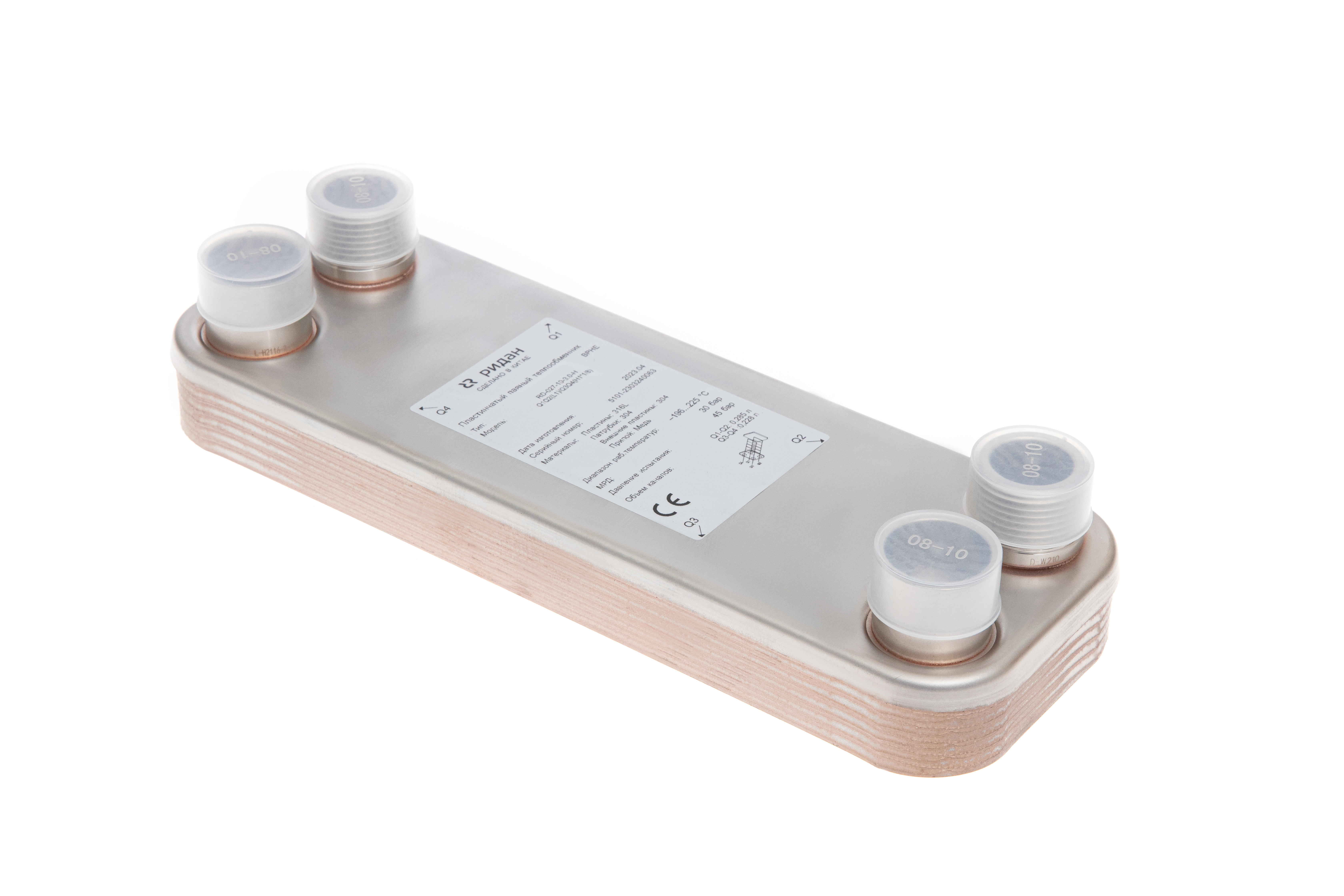 Ридан 021B8721R — Теплообменник пластинчатый паяный BPHE_RD-027-10-3,0-H, присоединительный штуцер Q1/Q2 — L1, Q3/Q4 — H1"1/8