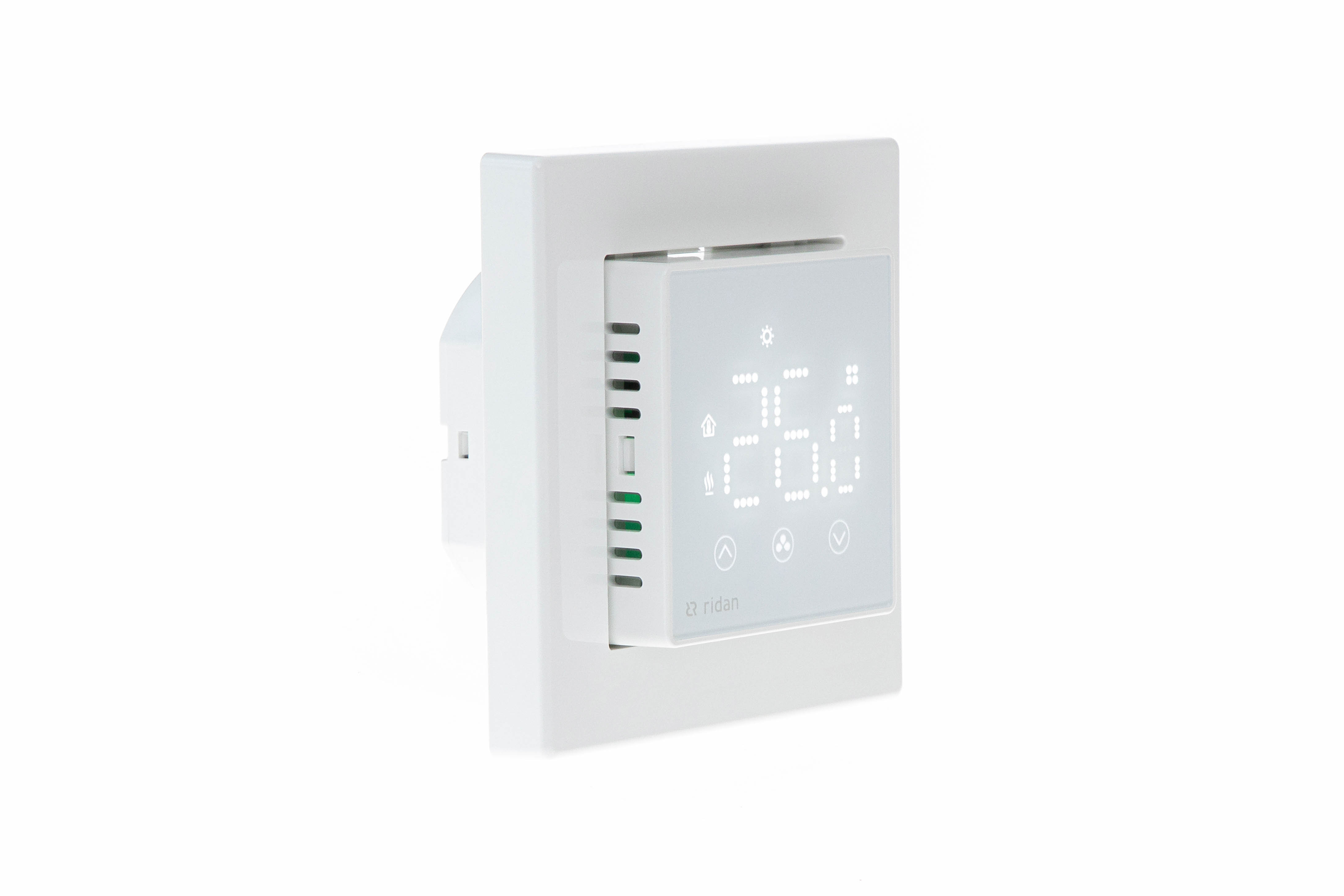 Ridan RSmart — электронный термостат с минималистичным дизайном, предназначенный для точного контроля и управления температурой воздуха или пола. Эта модель может подключаться к сети Wi-Fi.