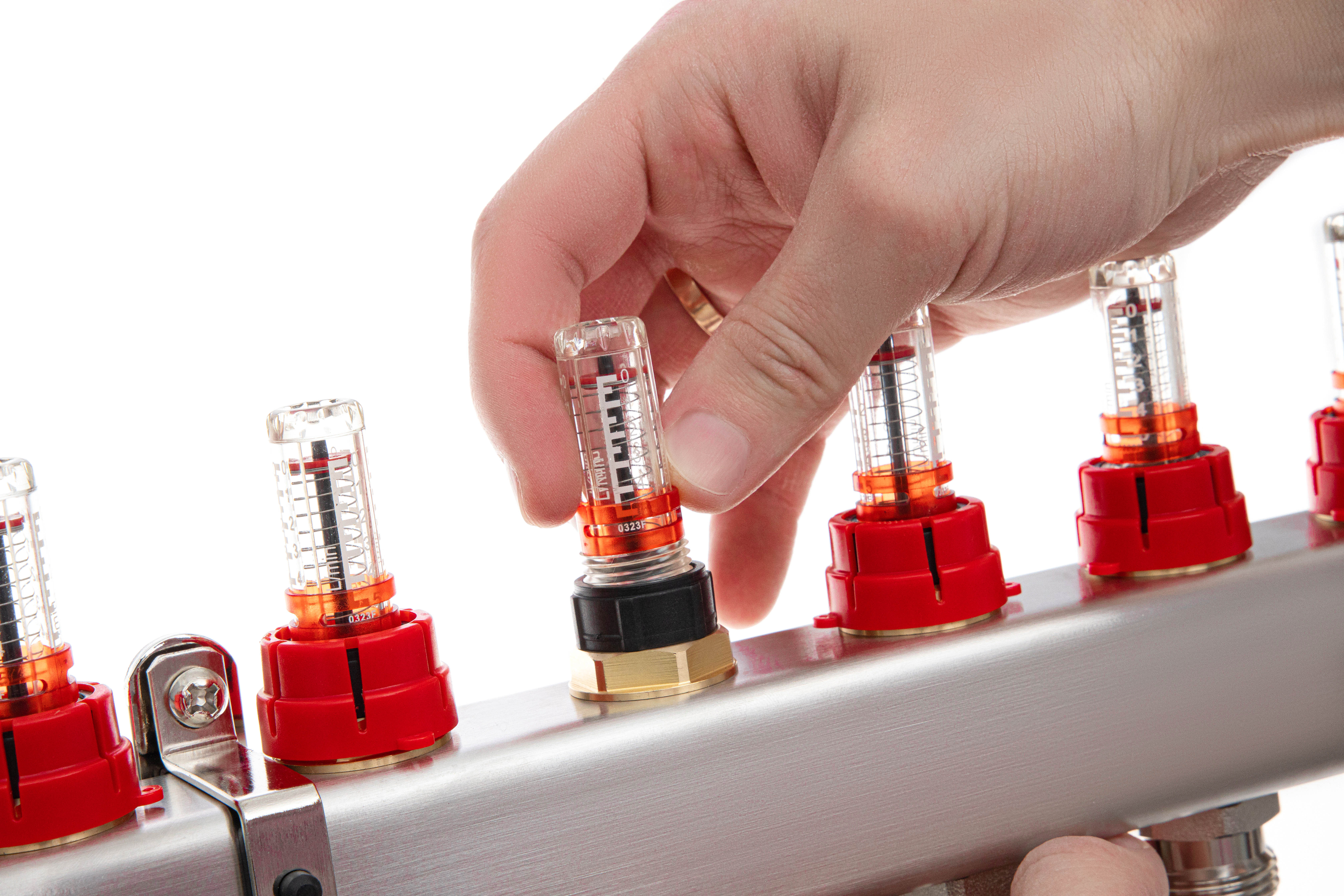 Ридан 088U0958R — Комплект коллекторов SSM-8RF set с расходомерами, кронштейнами, ручным воздухоотводчиком, сливным краном и торцевой заглушкой, 8 контуров
