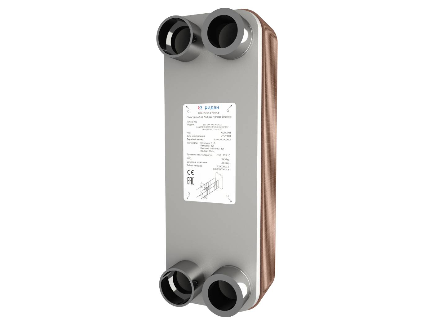 Ридан 111B0542R — Теплообменник пластинчатый паяный BPHE_RD-027-30-4,5-H-Q1Q2(L1")/Q3Q4(H1"1/8)