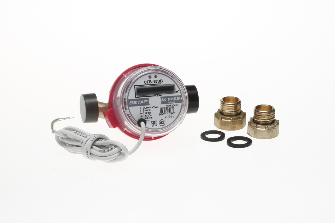 Ридан 187F2066R — Счётчик воды СГВ-15МВ c импульсным выходом (L80) без фитингов