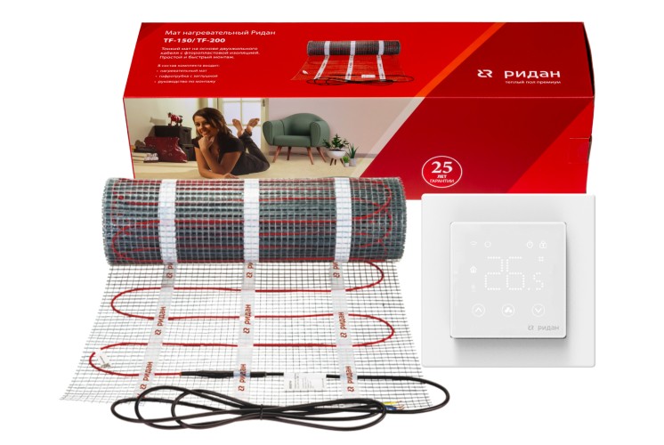 Ridan 21RT1115R — Нагревательный мат Ridan TF-200 10 м² с терморегулятором Ridan Clever (черный)